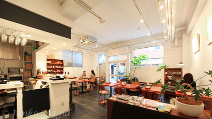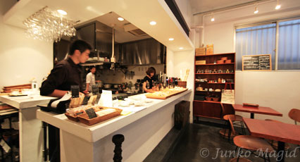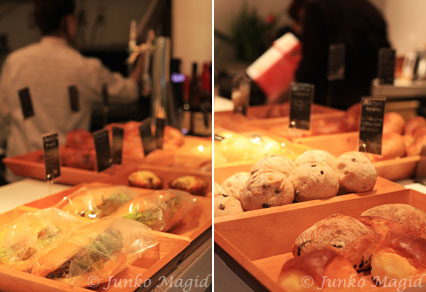 カウンターには、ブーランジェリー・アーさんのパンがずらりと。もちろんお持ち帰りもできます。麹町の方はイートインスペースが小さくて、このようなカフェを別に作りたいと思って場所を探したときに、麹町のお店から車で10分以内で、香ばしさを逃さずに持って来られるところを・・・ということで、飯田橋のここに決めたそうです。ブーランジェリー・アーさんのパンは、飯田橋近辺では、