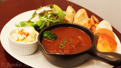 もともとランチプレートに沢山パンがのってくるのですが、なくなったらさらにお代わりを持ってきて下さいます。しかも何種類もの中から選べて幸せ〜!(ランチ終了間近に行ったので、写真では3種類ですが、普段はもっと多いそうですよ)