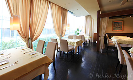 おいしいお料理をいただきながら、さわやかに過ごせそうな、気持ちいい空間ですね。